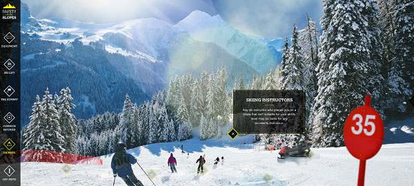 还有一个例子。Safety on the Slopes项目背后的创作者想到一个巧妙的交互式图形,用来警告用户冬季运动的危险。非常创新,同时也很直观、有趣、令人印象深刻。