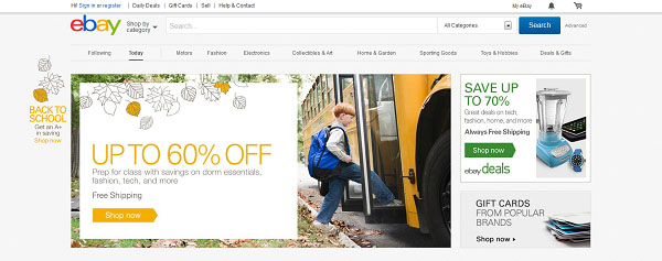 EBay是主要在在线零售商之一,在这点上做得不错。没有用产品图片、促销和各种行动召唤塞满整个页面,而是保持它干净简洁,强调他们确实希望用户首先关注的东西,并附上清晰的提示,接下来该怎么做。