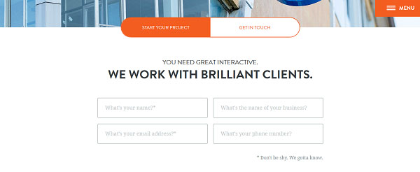 如果你看了mostlyserious.io的表单,你绝对会喜欢它的鼠标悬停和按钮按下状态。而且,“别害羞”的提示文案增加了一丝亲切幽默的感觉。