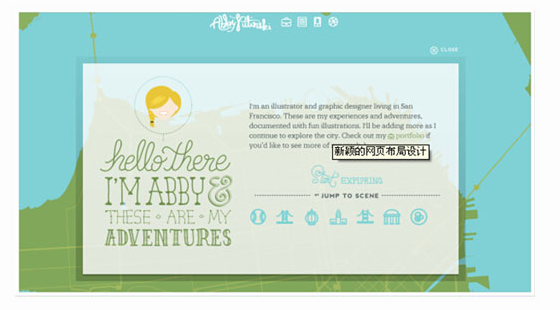 3、关于作品集类型的创意网站布局,如下面的网站,是一个作者的原创作品收藏。如果你没有走进这个网站,看到小编给的这张图片是否觉得它很普通,色彩也显得暗淡,其实这个网站的布局非常有意思,从你进网站开始,页面就会跟着你的鼠标所指的位置移动,点击你想要了解的内容就可进入详情页。而网站左上角的心形则是整个网站的导航栏,进入退出一键搞定。